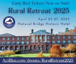 “Join the DPVA Rural Caucus April 25-27 at Natural Bridge Historic Hotel and Conference Center for a jam packed weekend with Rural Democrats where we will learn, hear, speak and share with each other innovative strategies on how to work and win in rural areas. We will be joined by a host of Democratic speakers, organizations, and candidates from across the Commonwealth!”